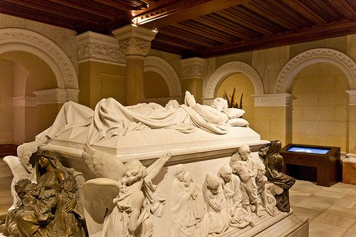 La cripta fue proyectada por el escultor Lorenzo Coullaut Valera, autor del imponente mausoleo donde actualmente reposan los restos mortales de los Marqueses. De una impresionante suntuosidad, el mausoleo está compuesto por las figuras yacentes de los Marqueses de Linares, fielmente esculpidas en rico mármol blanco y acompañadas de imágenes en bronce que ciñen los cuatro frentes del túmulo funerario representando a la Fe, la Esperanza y la Caridad y en la parte posterior el escudo heráldico de los Marqueses con los relieves en mármol de San José y San Raimundo.